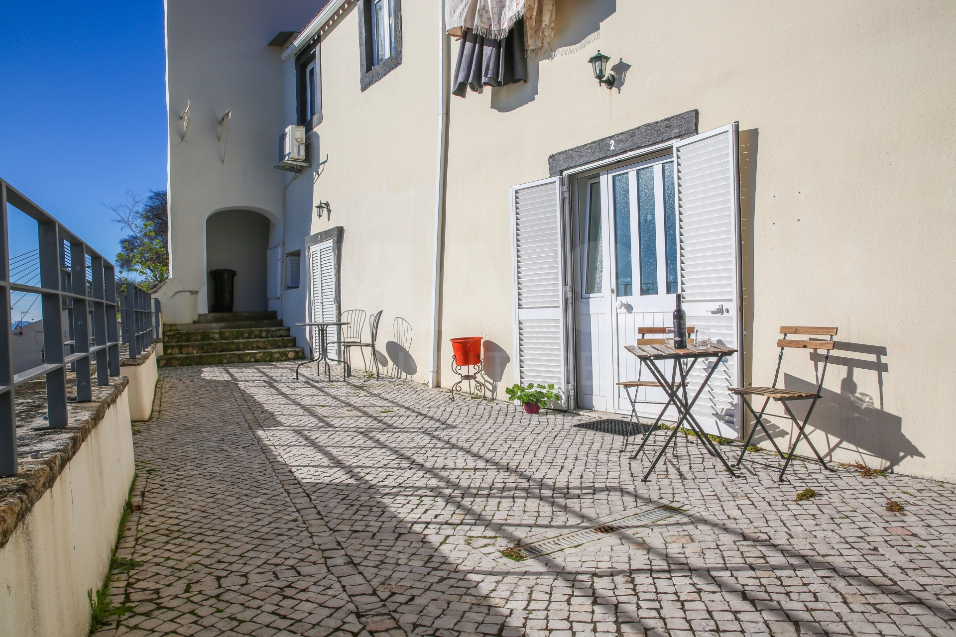 The outdoor space is a south-facing terrace with full views of the River Tagus; I'd say it's the ideal place to start the day with a morning coffee and watch the river, or relax reading a book and drinking a cup of tea, or unwind at the end of the day.